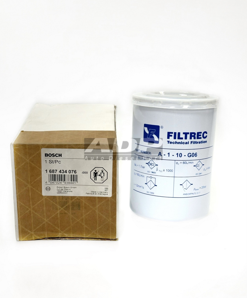ФИЛЬТР ПРОТОЧНЫЙ ГИДРАВЛ. (FILTREC A-1-10-G06) 1687434076 (производитель Оборудование BOSCH) - Розничная цена 12010.00 р., Оптовая цена - по договору. Срок поставки: в наличии и под заказ. Бесплатная доставка по Санкт-Петербургу или до транспортной компании. Автозапчасть по каталогу производителя относится к группам: Диагностическое оборудование, Расходоные материалы диагностики. Основные характеристики артикула 1687434076: размеры (210/160/110/) мм., вес - 0.758 кг., объем - 3.696 л.. Фото: 1687434076.