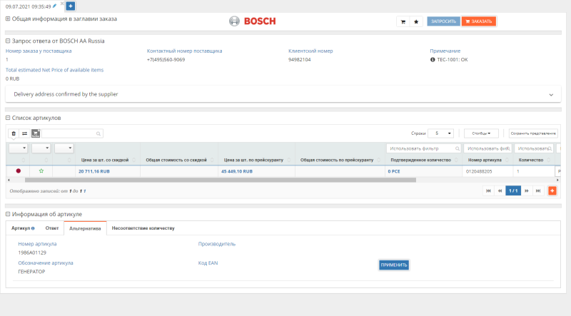 Генератор 1986A00755 (производитель BOSCH) - Розничная цена 47634.68 р., Оптовая цена - по договору. Срок поставки: в наличии и под заказ. Бесплатная доставка по Санкт-Петербургу или до транспортной компании. Автозапчасть по каталогу производителя относится к группам: Стартеры и генераторы, Генераторы.