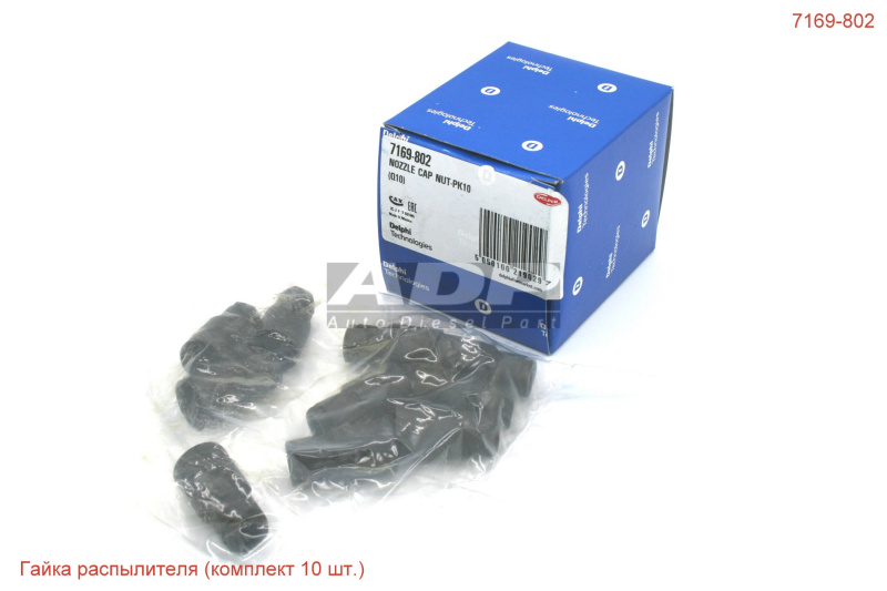 Гайка распылителя (комплект 10 шт.) 7169-802 (производитель DELPHI) - Розничная цена 2263.75 р., Оптовая цена - по договору. Срок поставки: в наличии и под заказ. Бесплатная доставка по Санкт-Петербургу или до транспортной компании. Автозапчасть по каталогу производителя относится к группам: Дизель - Средний коммерческий транспорт, Распылители и форсунки. Основные характеристики артикула 7169-802: размеры (104/86/86/) мм., вес - 0.23 кг., Фото: 7169-802.