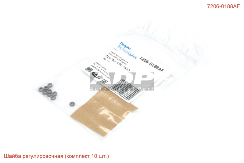 Шайба регулировочная (комплект 10 шт.) 7206-0188AF (производитель DELPHI) - Розничная цена 1280.00 р., Оптовая цена - по договору. Срок поставки: в наличии и под заказ. Бесплатная доставка по Санкт-Петербургу или до транспортной компании. Автозапчасть по каталогу производителя относится к группам: Дизель - Тяжелый коммерческий транспорт, EUI / EUP. Основные характеристики артикула 7206-0188AF: размеры (14/96/18/) мм., вес - 0.02 кг., Фото: 7206-0188AF.