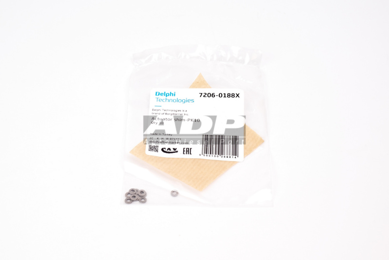 Шайба регулировочная (комплект 10 шт.) 7206-0188X (производитель DELPHI) - Розничная цена 1500.00 р., Оптовая цена - по договору. Срок поставки: в наличии и под заказ. Бесплатная доставка по Санкт-Петербургу или до транспортной компании. Автозапчасть по каталогу производителя относится к группам: Дизель - Тяжелый коммерческий транспорт, EUI / EUP. Основные характеристики артикула 7206-0188X: размеры (24/103/12/) мм., вес - 0.02 кг., Фото: 7206-0188X.