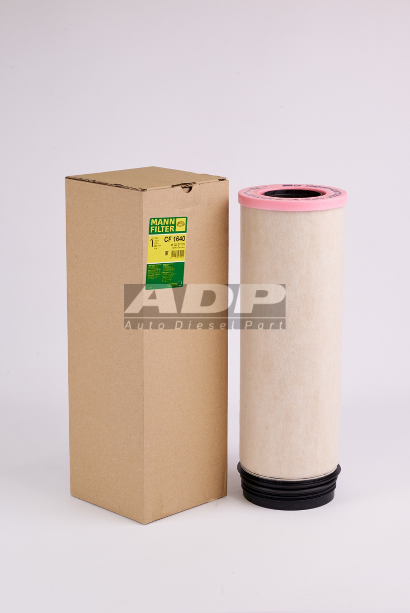 Фильтр воздушный CF1640 (производитель MANN FILTER) - Розничная цена 2901.25 р., Оптовая цена - по договору. Срок поставки: в наличии и под заказ. Бесплатная доставка по Санкт-Петербургу или до транспортной компании. Основные характеристики артикула CF1640: размеры (161/161/470/) мм., вес - 0.463 кг., Фото: CF1640.