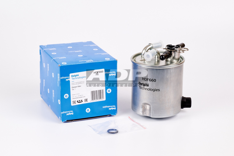 Фильтр топливный HDF660 (производитель DELPHI) - Розничная цена 3125.00 р., Оптовая цена - по договору. Срок поставки: в наличии и под заказ. Бесплатная доставка по Санкт-Петербургу или до транспортной компании. Автозапчасть по каталогу производителя относится к группам: Фильтрация, Фильтр. Основные характеристики артикула HDF660: размеры (145/112/100/) мм., вес - 0.439 кг., Применяется на следующих марках: NISSAN; RENAULT. Применяется на следующих моделях: Qashqai,Qashqai+2,X-Trail; Koleos. Фото: HDF660.